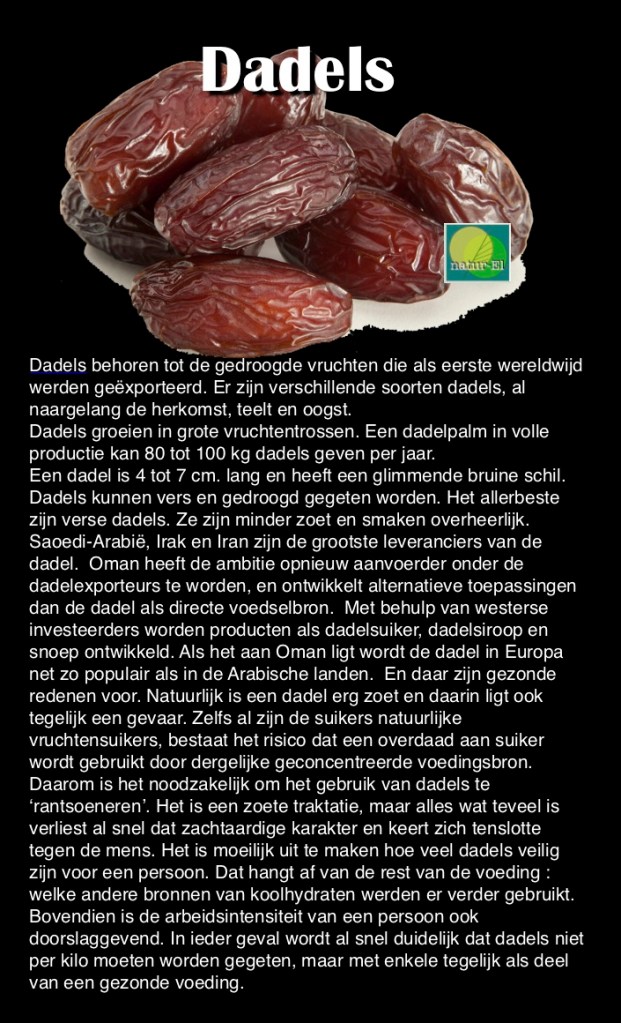 Dadels zijn een aanvulling op onze voeding. Ze kunnen het hele jaar door worden genoten en er kan op worden vertrouwd voor beschikbaarheid. Met zoveel verschillende variëteiten die tegen zulke redelijke prijzen verkrijgbaar zijn, kunnen dadels gemakkelijk worden bewaard en gekoeld gedurende meer dan een jaar na hun oogst. Met het hoge tempo van het leven zijn ze een gemakkelijke en voedzame voedselbron die ook veel plezier geeft.