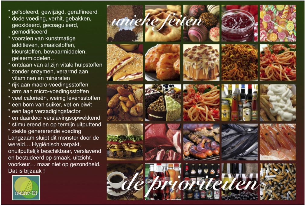 Dit is hoe ik die “prioriteiten” in het verleden voorstelde: de groep van voedingsmiddelen met een gemeenschappelijk karakter. Ze verzuurt, ze is gemaakt, en veel mensen zijn er door betoverd… En nu is het aan jou om ze te laten staan en te gaan voor echte voeding. euwige bestemming